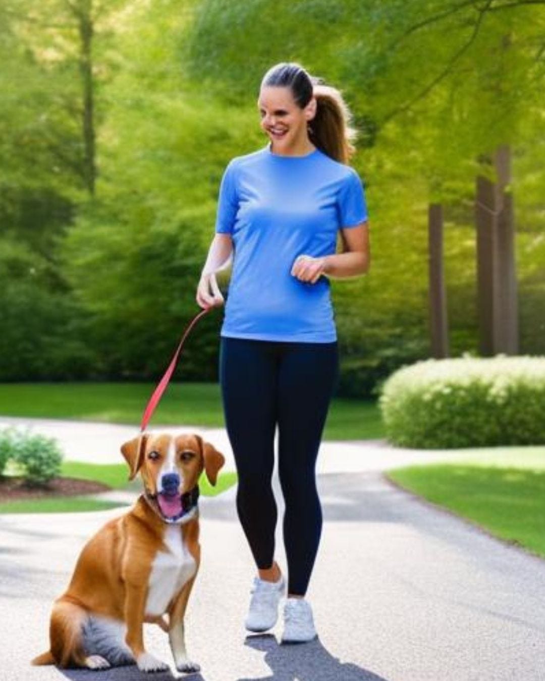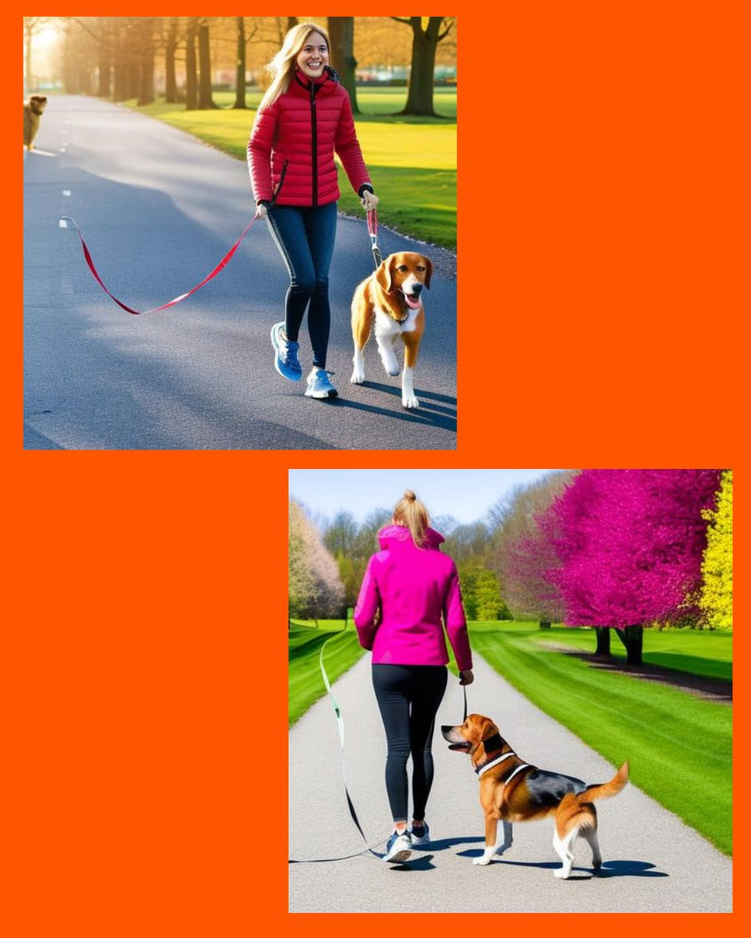 Estas son dos de las imágenes que ha creado para “imagen de una paseadora canina usando una correa larga”: