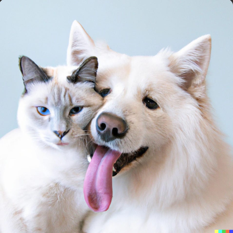 Para que te hagas una idea del resultado, esta se corresponde con la descripción: “una foto de un Samoyedo con la lengua fuera abranzando a un gato siamés blanco”: